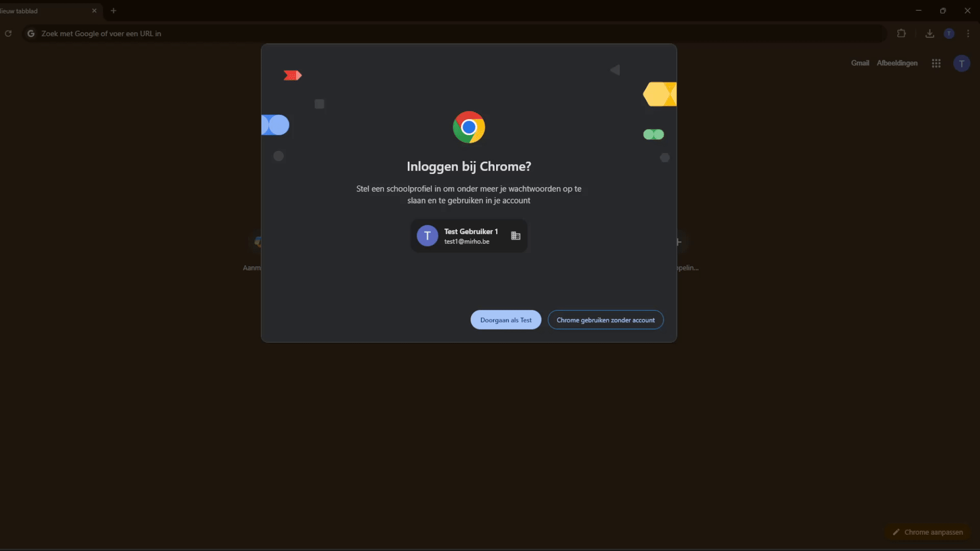 Nadat u de browser opstart, kan er worden gevraagd met welk account u wilt inloggen. Als u op uw schoolaccount wilt inloggen, selecteer dan uw nieuw Mirho-account.