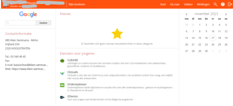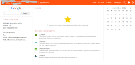 Open op de computer de startpagina van het Smartschoolplatform van het Klein